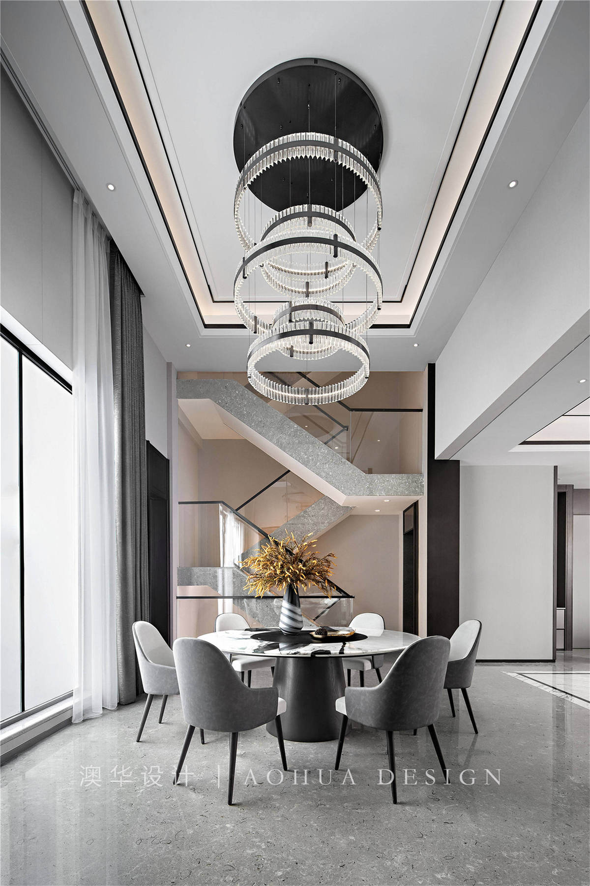 • 中式灰调高贵典雅,细节中透露出古韵元素点到为止,沙曼、琉璃、水晶灯等在杯酒碰撞流光溢彩中品味历史时光和岁月故事。
