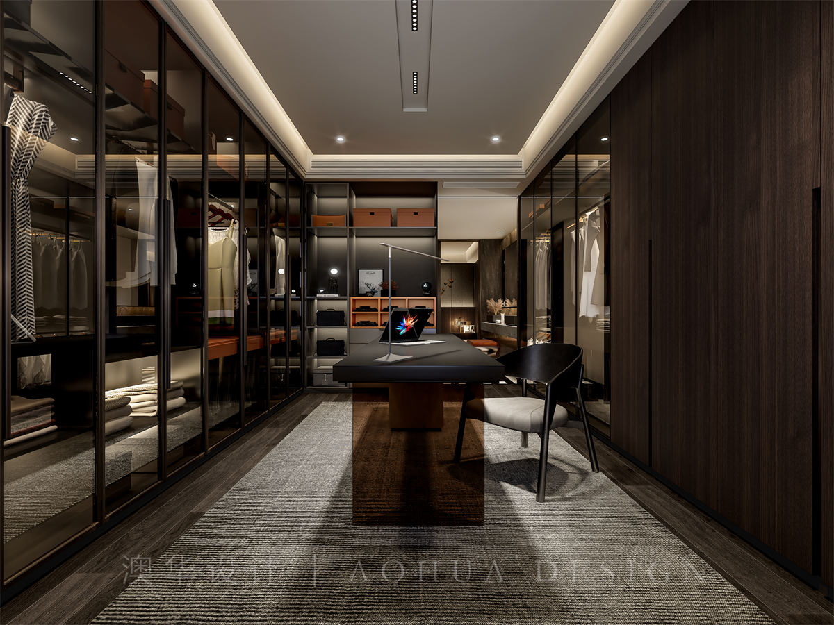 • 根据客户的想法进行深化设计,按照客户的喜好做了深色层次的设计,整个卧室优雅整洁。