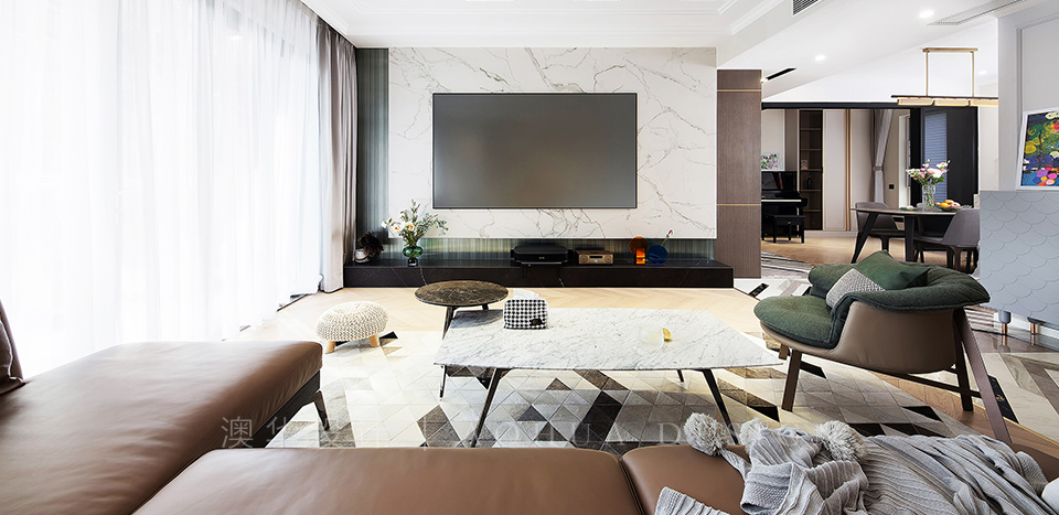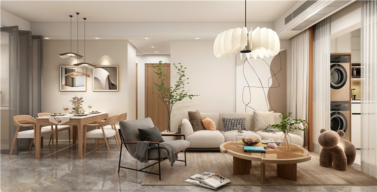 金科城这套126㎡的三居室住宅虽然面积相对较大,且南北通透 6686官方版app,采光好,但是由于原有的空间结构划分并不够合理,存在着一些细节不足,因此需要设计师合理的化解空间劣势,为了降低大面积客厅带来的空旷感,设计师将阳台区域向内进行扩大,并改造成一个大的休憩,观赏区域,同时将客厅内部区域借助软隔断改造成就餐区域,满足使用需求的同时降低客厅过大带来的单调氛围。