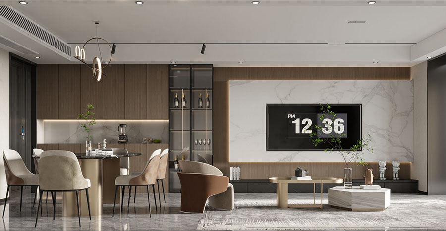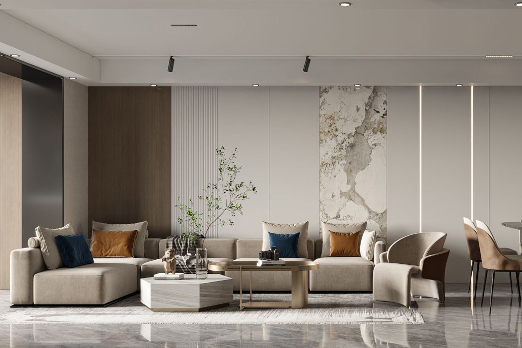 暖色调的设计搭配独特的沙发椅以及茶几别具风味,柜子上的饰品也充满了现代感 6686官方版app,每一处都突出现代简约的风格。