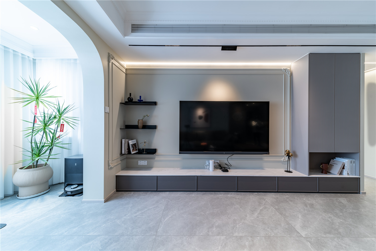 案例简介:其实对于绝大多数人而言 6686官方版app,家不需要花里胡哨的设计,只需要能够给人一种踏实的归属感就足够了,也因此本案例的设计师在与业主进行沟通之后,舍弃了各种华丽的设计,借助最为常见的灰白配色营造一种温馨舒适感,同时借助简单的墙面设计,在不会显得过于刻意的前提下装饰点缀空间,强调一种简约而又不简单的高级洁净美。