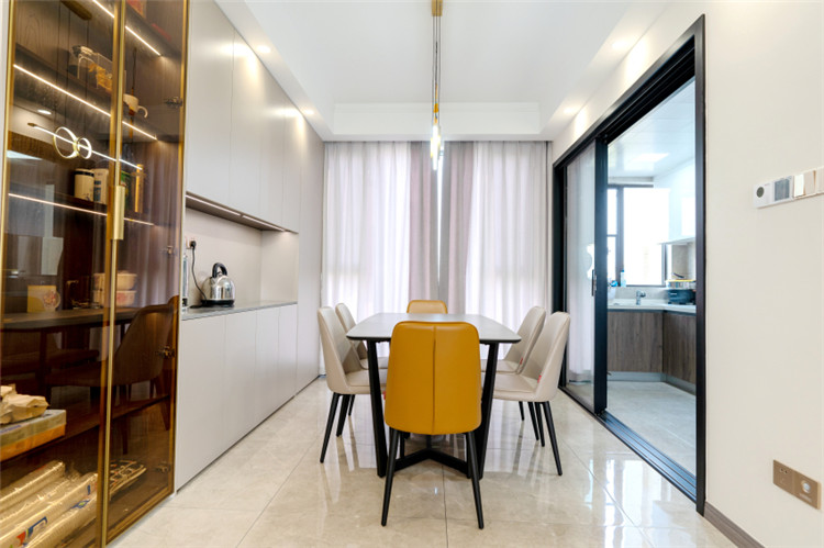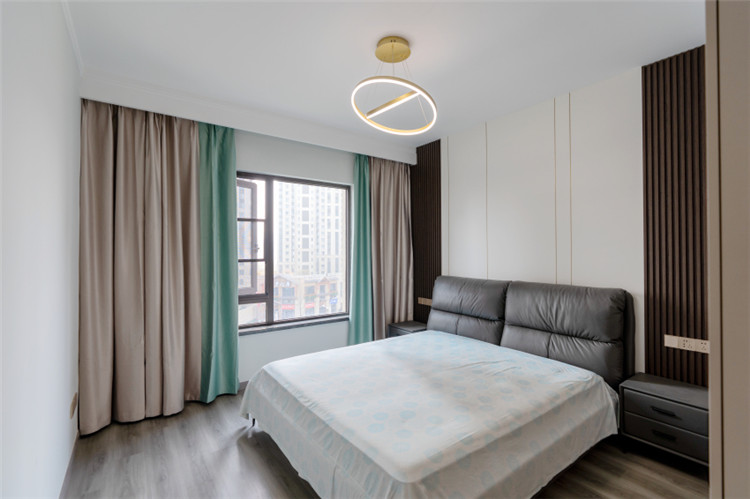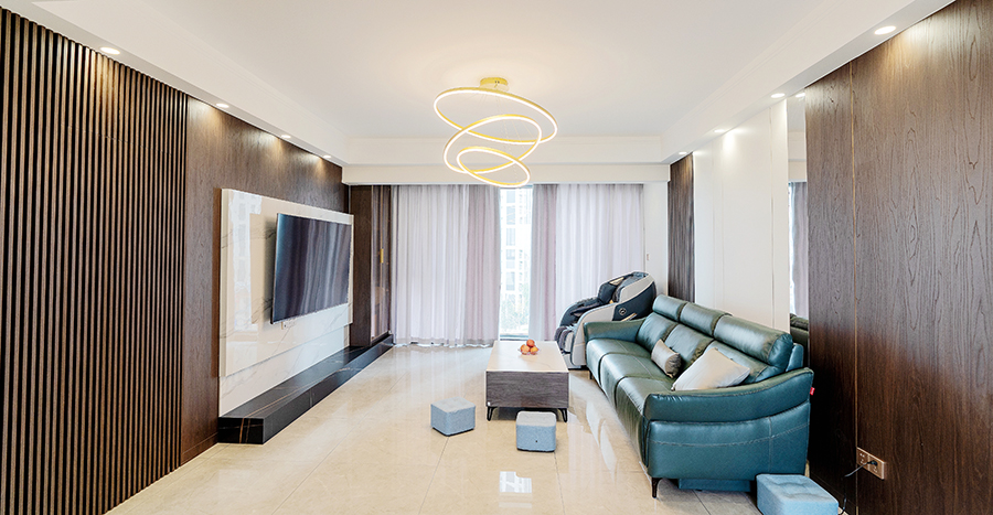 这套融创观澜府的四居室房屋建筑面积在143㎡左右,房屋的结构已经有了雏形,且业主为了节约装修花销,提议设计师在原有的户型结构上进行装修设计,因此设计师保留了原有的功能结构,同时借助色彩 6686官方版app,材质等软装元素为房屋进行“包装”,以保障装修效果,同时,为提升空间质感,设计师选用了大量“隐形”设计,如材质本身的纹理等,以起到在无形中装饰空间的作用。