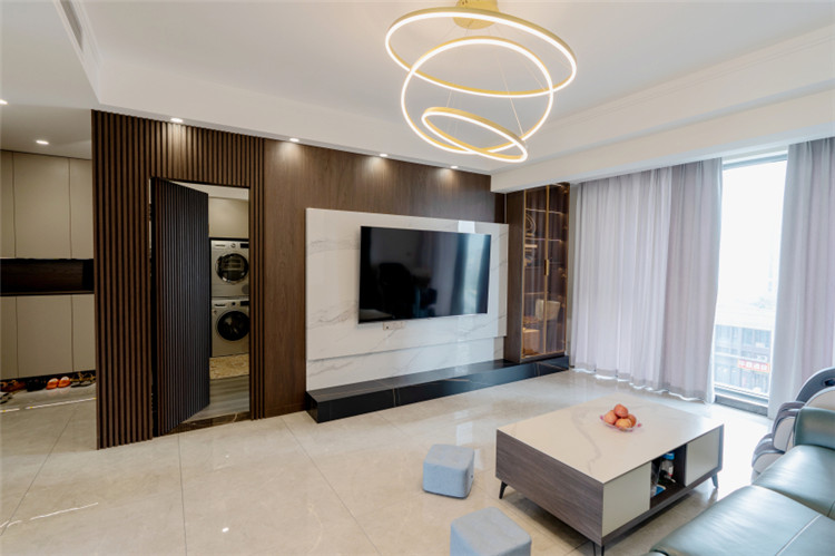借用隐形门作为电视背景墙,艺术感十足而又有效提升了艺术墙面的利用度 6686官方版app。