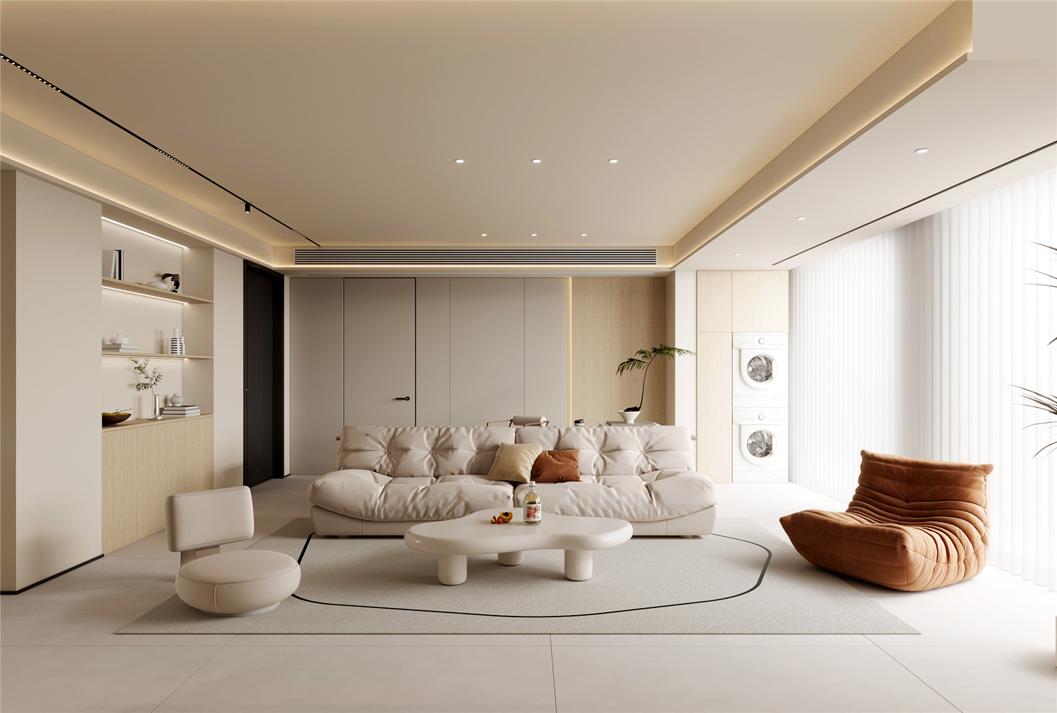 3 阳台融入客厅,让客厅更宽敞,视野更开阔;阳台洗衣烘干一体设计,更符合快节奏的生活。